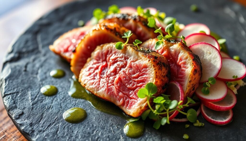 To make your seared ahi tuna stand out, think about how you present it. The right plating can turn your dish into a feast for the eyes and taste buds. It’s all about creating a restaurant-quality meal at home.